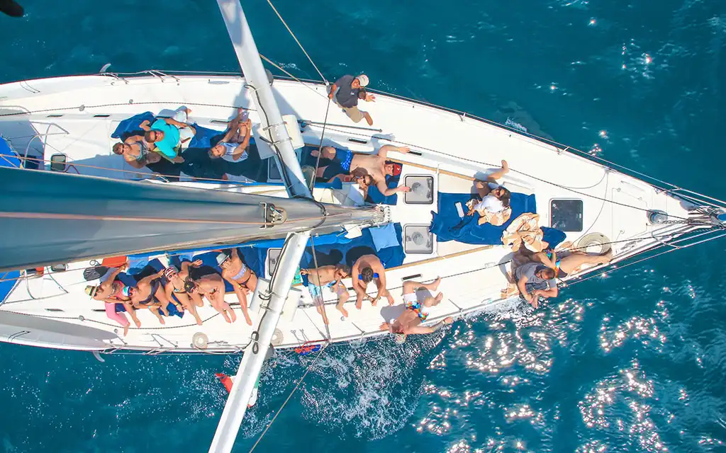 Professional Crew, full insurance, bathrooms on board, SUP (Stand up paddle Boards), snorkel equipment, unlimited national open bar, lunch, excellent service and Sailing.